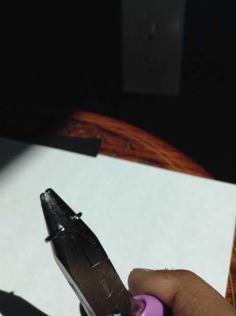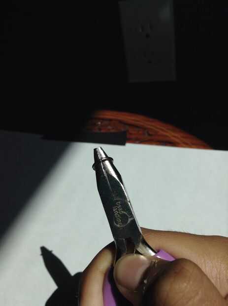 Este es el proceso más difícil para mí porque es muy difícil para los anillos de abrir y cerrar los anillos. Empezar a conseguir el arillo y montar en algún lugar. (Sólo grabado hasta mi mesa) Ahora procedemos a abrir las anillas. Para ello utilizar los alicates joyeros y deslícelo sobre la boca cerrada. Para abrir el anillo del salto un poco abierto la pinza un poco. Repita este proceso hasta que usted tiene una cadena como usted quiere. El mio es largo de 6.