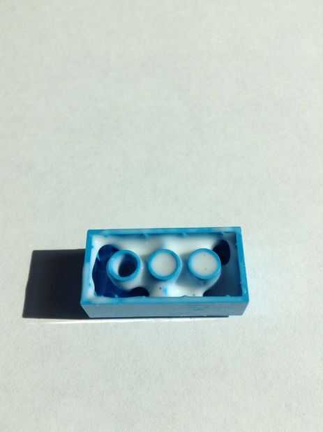 Ahora que ya terminamos con la parte más difícil que podemos hacer la parte fácil. Primero llenar la parte inferior del bloque de Lego y luego inserte el último anillo del salto en el pegamento y deje secar.