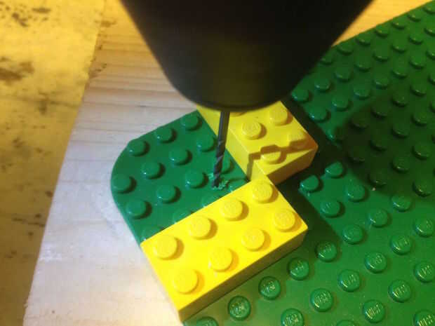 yo entonces (con cuidado) pequeños agujeros perforados en el lego aburrido para permitir que la Junta Directiva fijar firmemente en el tablero mediante tornillos pequeños