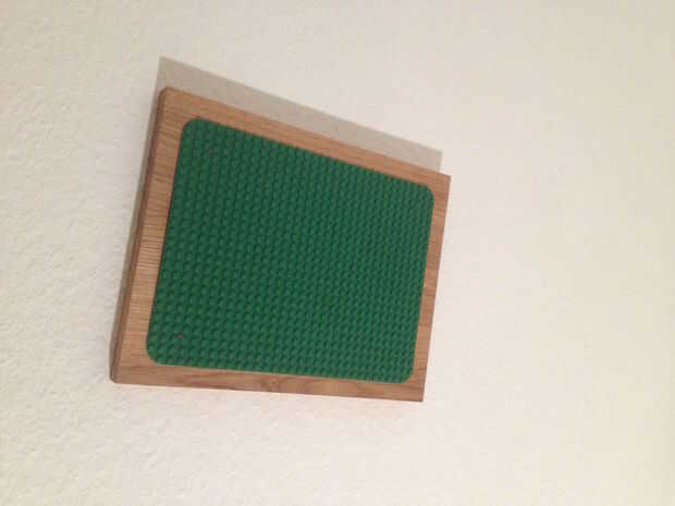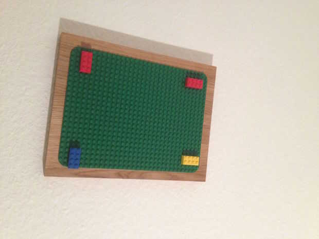 LEGO junta montada firmemente a la madera y el tornillo dirige convenientemente oculto usando algunos ladrillos de lego de repuesto.