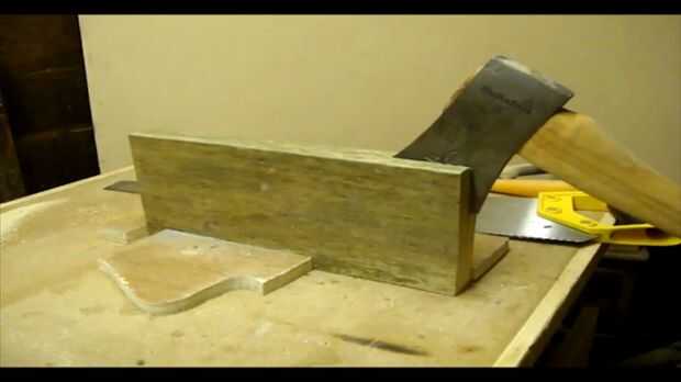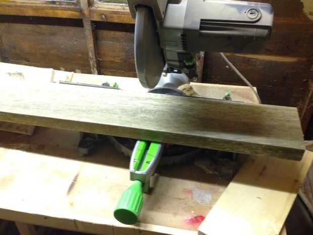 • Cortar el pino parana a la longitud de la sierra para cortar ingletes y dividida por la mitad con mi hacha que era mucho más gruesa que la madera de palet que estaba usando el cuerpo del titular de la clave.