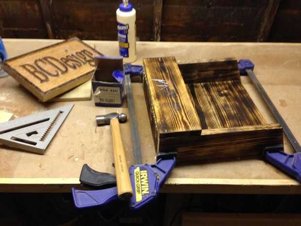 • I clavado y pegado la parte delantera del soporte y entonces clavó a los lados