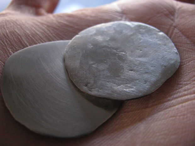Gran trabajo de monedas ya que en su mayoría están fabricadas de cobre que martillos bien. También son los mismos a través hacia fuera. Si utilizas un cuarto, usted tendrá un monstruo de dos tonos. Pero que sería cool también.