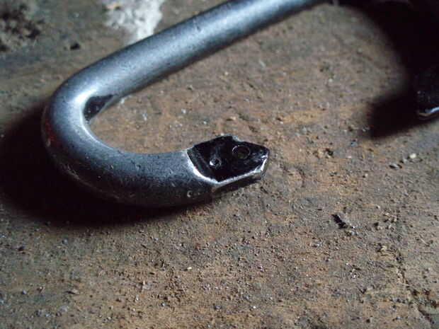 Ahora, tienes que hacer un segundo agujero para el wiregate, bajo el agujero ya existente, cerca de 2 mm de diámetro (14 G o 5/64")