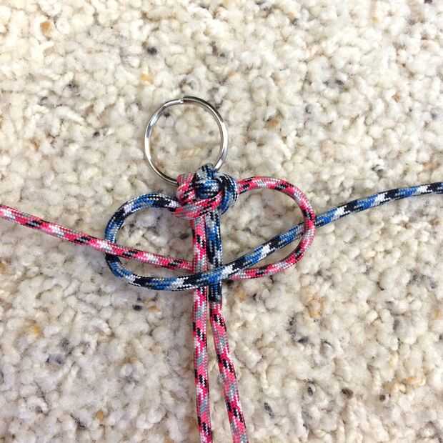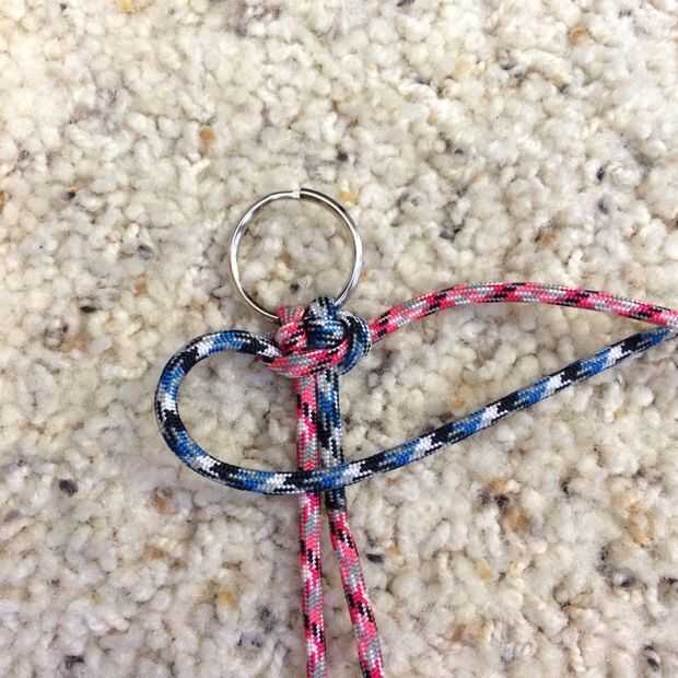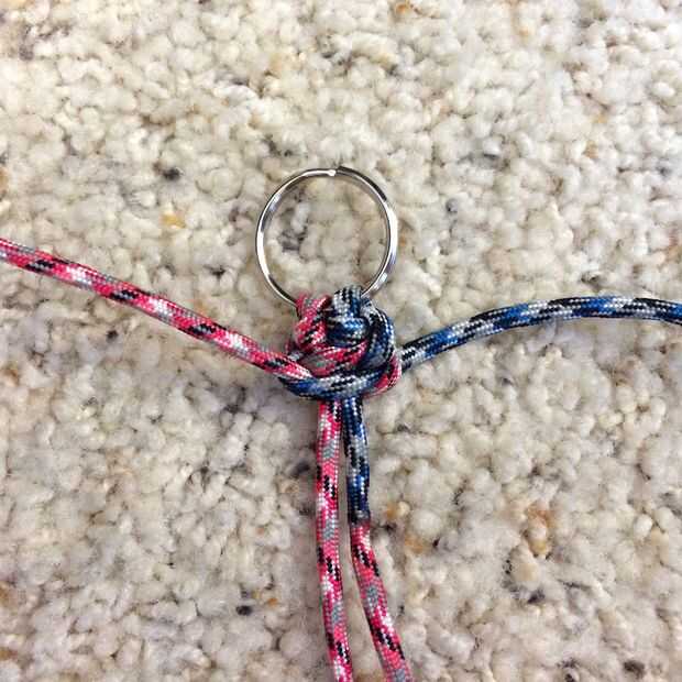 la práctica común para la fabricación de un conector de llavero paracord es un nudo simple. Sin embargo, después de probar esto, pronto noté que el nudo de grande y voluminoso mantiene sobresalen en ángulos extraños y pusiera en el camino al intentar
