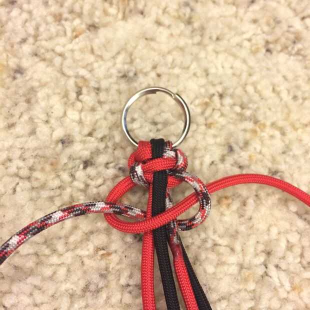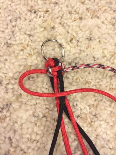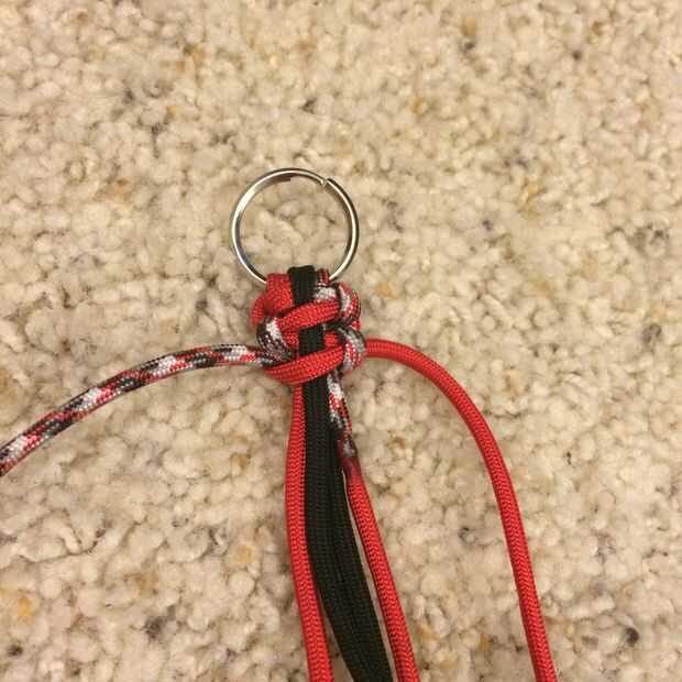 la práctica común para la fabricación de un conector de llavero paracord es un nudo simple. Sin embargo, después de probar esto, pronto noté que el nudo de grande y voluminoso mantiene sobresalen en ángulos extraños y pusiera en el camino al intentar