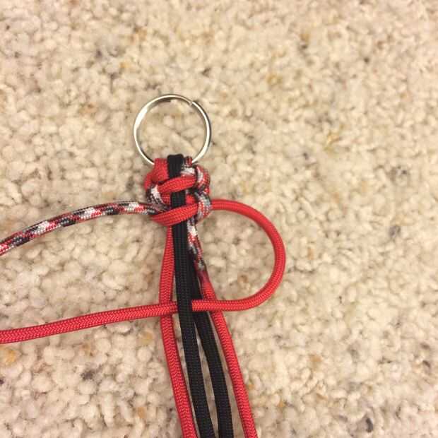 la práctica común para la fabricación de un conector de llavero paracord es un nudo simple. Sin embargo, después de probar esto, pronto noté que el nudo de grande y voluminoso mantiene sobresalen en ángulos extraños y pusiera en el camino al intentar