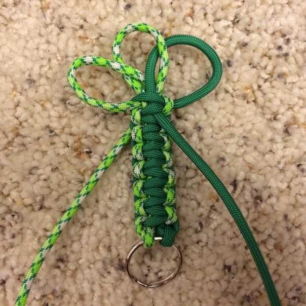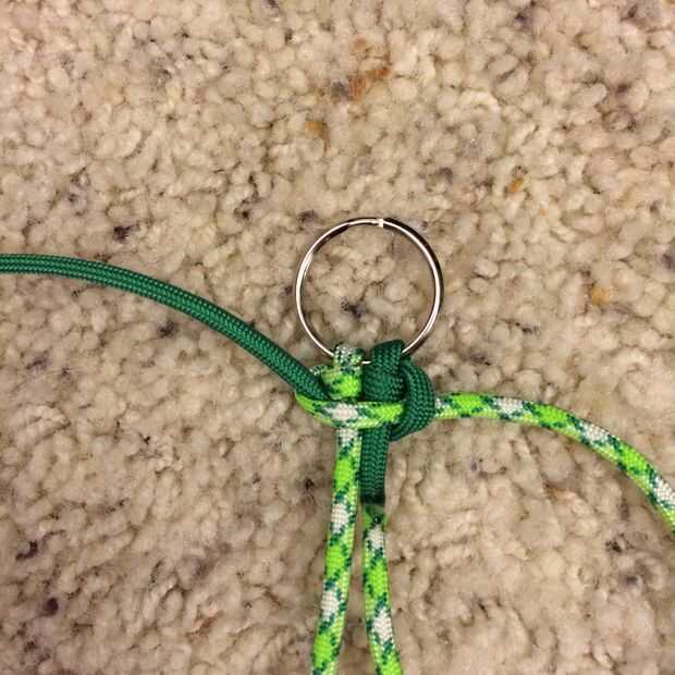 la práctica común para la fabricación de un conector de llavero paracord es un nudo simple. Sin embargo, después de probar esto, pronto noté que el nudo de grande y voluminoso mantiene sobresalen en ángulos extraños y pusiera en el camino al intentar