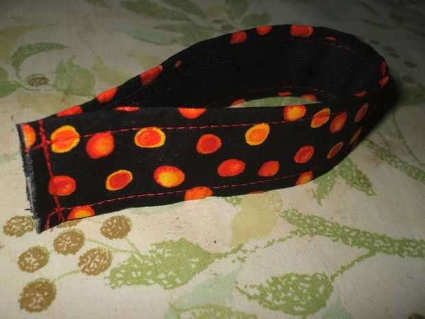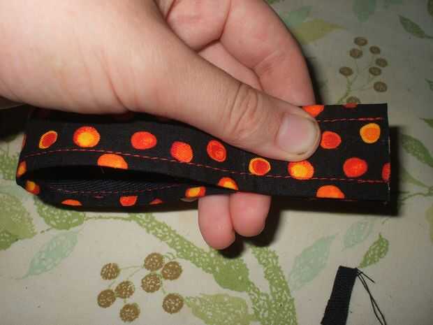 a. recorte cualquier sueltos y si es necesario, alisar los bordes. b. coincidir bordes, lado derecho. Esto significa el lado de la cinta de algodón dentro del bucle. c. coser bordes juntos, aprox. 5 mm del borde. Esto mantiene todo junto cuando el hardware.