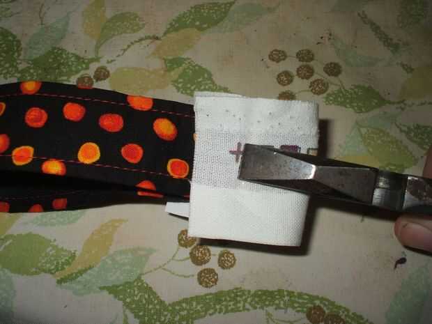 c. cubrir el hardware con el recambio tela y usando un par de pinzas de punta Roma, comienzan a exprimir el hardware cerrado.