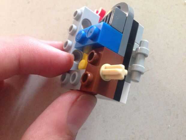 mis hijos y yo hemos estado haciendo un llavero de lego para mi Esposito para día de padres.He visto tutoriales similares en la web, pero todos han requerido para perforar una pieza de lego. Simplemente no podía traer yo a hacer eso (!) pero por suer