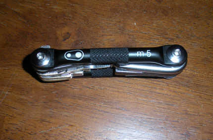 Ta Da! Todo doblado hasta medidas de 3,5 "x 1.25" x. 75" de referencia, podría caber dos de ellos dentro de la huella de una tarjeta de crédito. Yo quería mina ser tan pequeño como sea posible, pero si usted no cuida sobre un pequeño factor de forma, o usted necesita espacio para acomodar más llaves siempre se podría ir con la manivela hermanos M-10 que tiene la misma longitud como la M-5 pero doble de grasa.