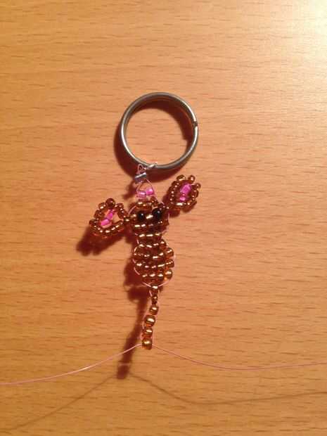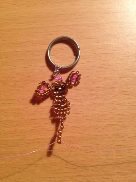 utilizando la misma técnica como las primeras filas y con perlas sólo marrón, completan estas filas; 5 granos, 3 granos, 4 granos, 5 granos, 5 granos, granos de 4 y 6 hileras de 1 grano Tenga cuidado cuando disminuye para asegurarse de que la estancia de granos centrado en caso contrario el ratón termina torcido.