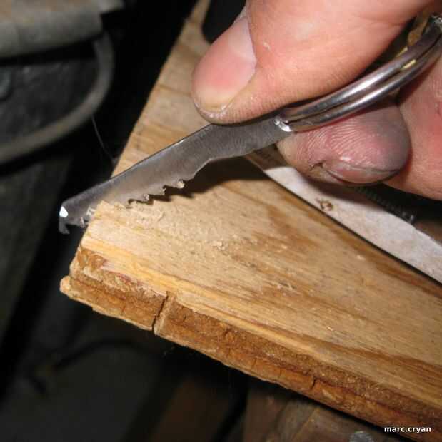 Cuchillo supervivencia pequeño hecho de una hoja de sierra vieja - Jimmy Diresta inspirado