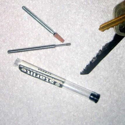 esto es un seguimiento de mi Instructable recientes en la fabricación de un ojo de la cerradura vio manejar del tubo.  Fui a buscar un nuevo ojo de la cerradura o brújula hoja de sierra y encontró que no existen.  Pude comprar una barata Sierra compá