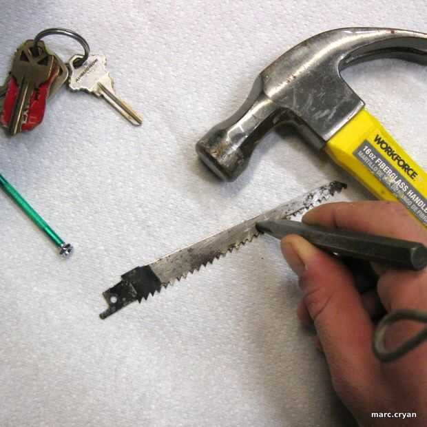hacer una sierra de mano.Puede ser utilizado para el corte de luz, corte de cinta de embalaje en cajas o sobres de apertura.Paso 1: Crear la manija Partes:-cinta aislante-Sierra de intercambioCrear un mango con la cinta del conducto. Envuélvalo alred