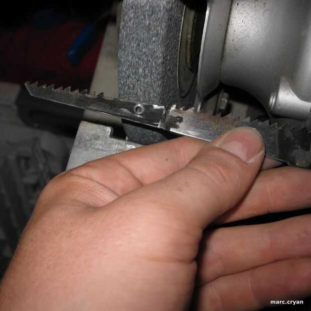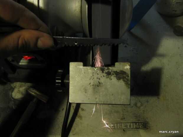 usé una esmeriladora de banco que forma la sierra.