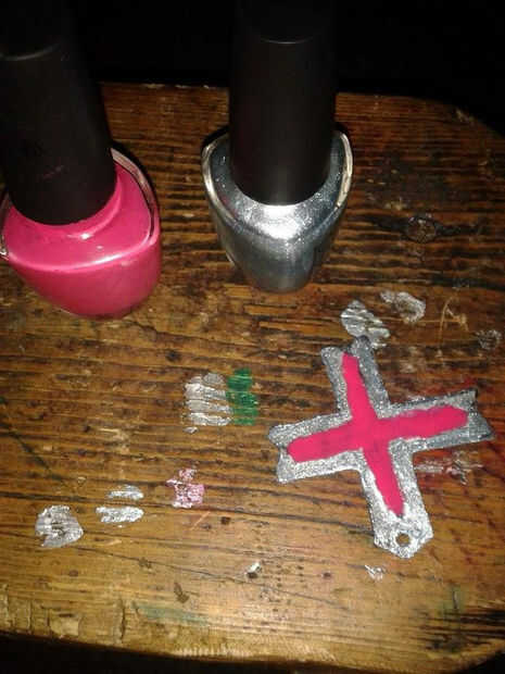 Pinte ambos lados totalmente de plata. Lo hice con esmalte de uñas porque es tan barato y fácil, y se ve muy bien dependiendo de que uno obtendrá. Una vez que haya secado la pintura ir al centro del llavero colgante y hacer una red hacia fuera y luego dejar se seque.