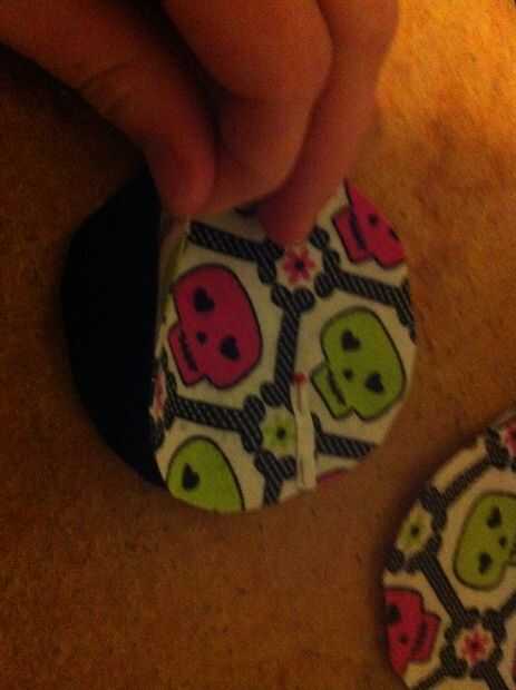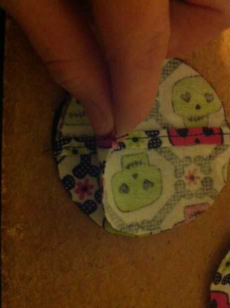Prender los semicírculos (derecho contra derecho) a la salida de círculo de tela. Superposición de los bordes rectos.