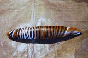 Una vez que algunas rayas agradables pasando, rodillo de la arcilla con las dos manos, empujando hacia el centro. Esto hará que la serpiente rodillo corta y hacer esas rayas más... stripey. Un poco "tigre-y", también, ¿EH?