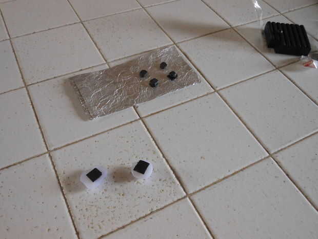 Ahora es tiempo de crear los botones! Tome un pedazo de fimo y trabajar con las manos. Cuando parece bastante suave Pulse en su molde. Dejar enfriar el fimo, de esta forma se endurecerá un poco y será más fácil quitarlo del molde.