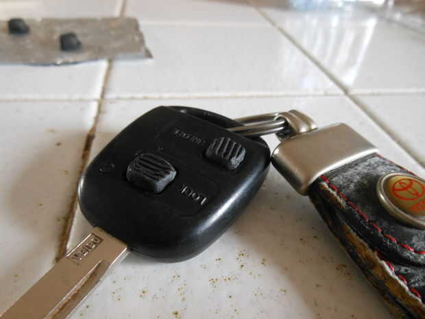 Ahora, basta tomar los botones nuevo y montarlos en sus llaves. Si es necesario, adaptarlos al cortar con la cuchilla.