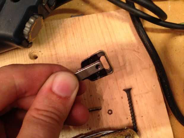 La hoja que lo planeado en volver a utilizar tenía el agujero del pivote un poco a pequeño para caber sobre los pivotes nuevos así que tuve que volver a perforarlo con un taladro de 1/8 bits. Da vuelta hacia fuera, que es una pieza dura de acero. Rompí una broca antes me di cuenta que tuve que recuecen "ablandarlo". No querer arruinar la hoja entera llevó a cabo con mis pinzas y poner sólo la parte del pivote en un soplete de propano hasta que dio vuelta rojo cereza y dejarlo al aire fresco. No es suficiente, se rompió otra broca. Otra vez, sostuvieron en el soplete de propano hasta cereza Lee y dejó en la llama para un buen minuto después. Dejar aire fresco y esta vez finalmente pude agrandar el agujero pero todavía se arruina una broca de 3. Por lo tanto, asegúrese de que esto es lo último que haga.