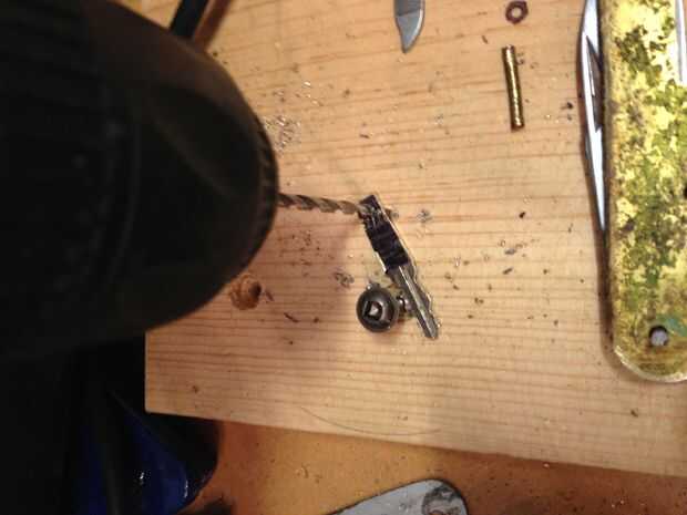 Utilicé un trozo de madera para perforar en y porque todo era tan pequeño no podía poseer las llaves mientras les de perforación por lo que acabo de poner un tornillo en el tablero y colocó la clave contra las le impiden girar mientras que perforar los agujeros de pivote.