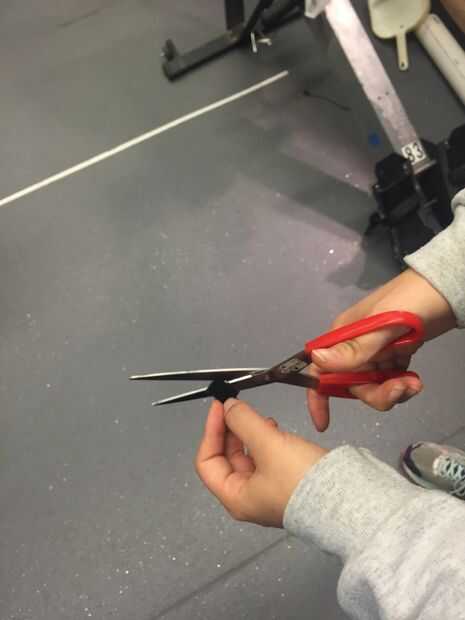 • Cortar velcro 3 trozos (pueden utilizar velcro extra pedido) en porciones de 1/2 pulgada (las dimensiones de la brújula)