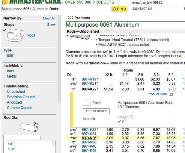 Barras de aluminio 6061 multiusos: 1/4 de diámetro, longitud de 3 pies (4,99$)