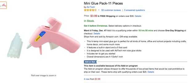 Aquí hay un enlace para una pistola de pegamento caliente barato, costo: $3,99