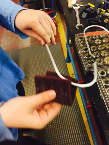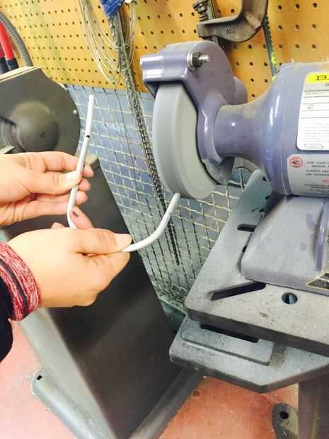 - Utilice la lijadora de disco para limar los bordes de los ganchos