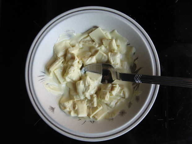 Usando el horno de microondas es la forma más sencilla. Poner los chocolates en el vaso y poner en el microondas durante unos veinte segundos. Después de este tiempo necesitará scoop/agitar el chocolate, que evita que se calienten demasiado. Tendrá que repetir esto hasta que el chocolate esté totalmente fundido (imágenes con chocolate blanco).
