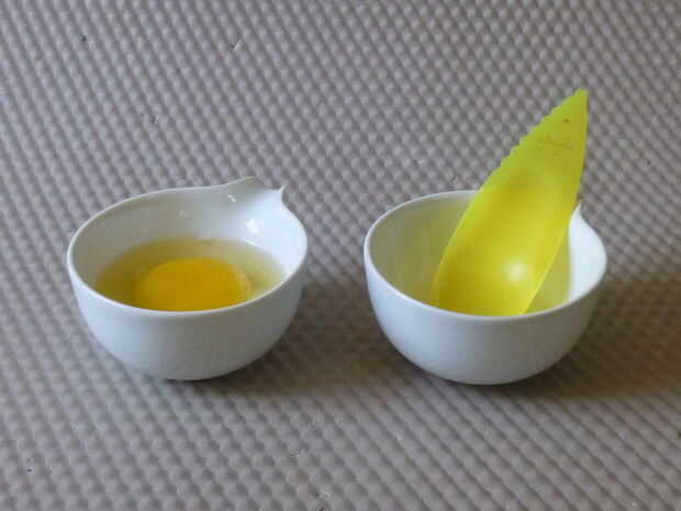 Técnica de punta: Si no desea guardar la yema de huevo, sostenga el huevo bajo el agua para ayudar a licuar y eliminar la yema de huevo.