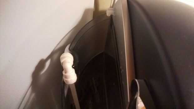 El tanque tiene un agarre de dedo moldeada. Deslizó la manguera en ese momento, debajo de la tapa. Añadido al codo de 90° y otra pequeña manguera para dirigir el agua a la parte inferior del tanque.