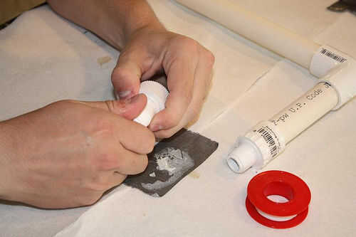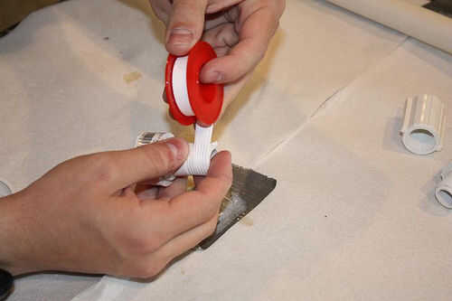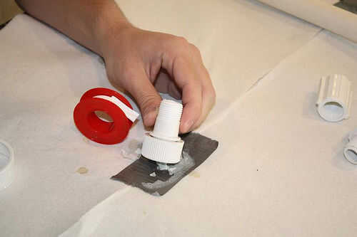 Tomar las 3/4" resbalón ajuste reductor de 1/2" roscadas. Envuelva las roscas en la cinta de teflón, asegúrese de enrollar la cinta en la misma dirección será ser torciendo la pieza en el acoplador. Repita para el tubo roscado a 1/2" roscadas reductor.