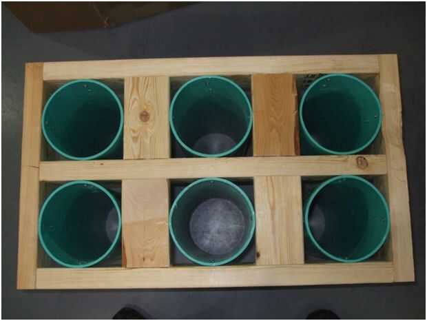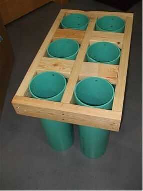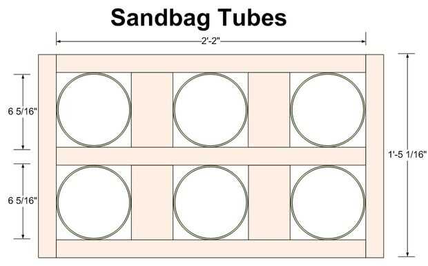 Cuando todos los tubos de 6 se atornillan en, los tubos son utilizables. En este punto, usted puede poner en la parte superior opcional. La ventaja de poner en la parte superior es evitar la arena cayendo al lado de los tubos y empuja las bolsas hacia abajo. Si vas a poner la tapa, cortar la parte superior para montar sobre el bastidor. Atornille la tapa sobre las tablas del marco. Ahora perfore un agujero y luego usando un router o una sierra de vaivén de la mano, cortar los agujeros para cada tubo.