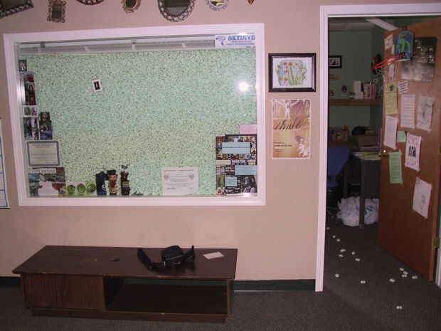 Randyplayed un truco en la oficina cuando él era el único en el trabajo la semana pasada. El lunes, cuando resultó que Randy estaba trabajando desde su casa, Nate, Sarah, y yo decidí pagar Randy por convertir su oficina en una playa.Fue significado p