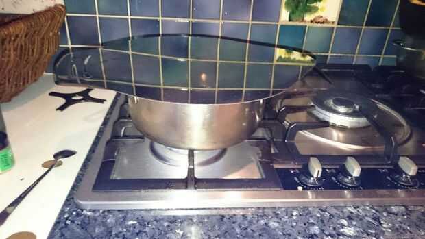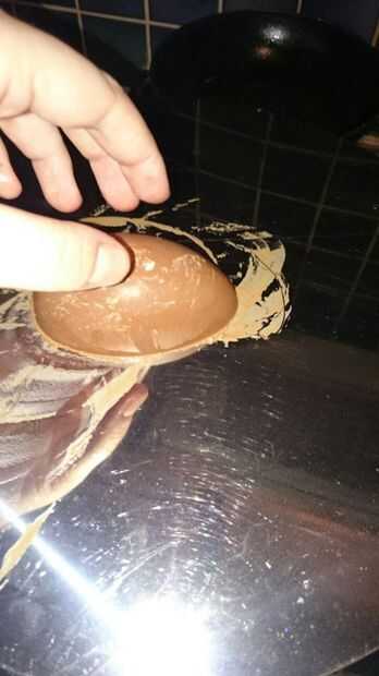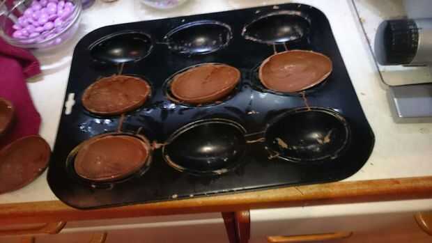 La mitad de sus depósitos en la superficie del metal, coloque boca abajo y les deje que derrita un poco, para que los bordes son aún.