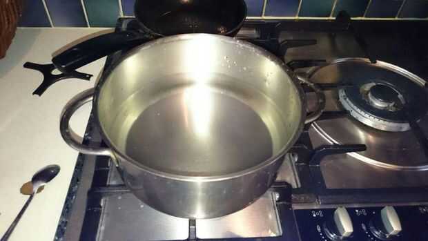 Tomar una olla, llenar algunos de agua y calentar para arriba.