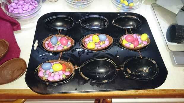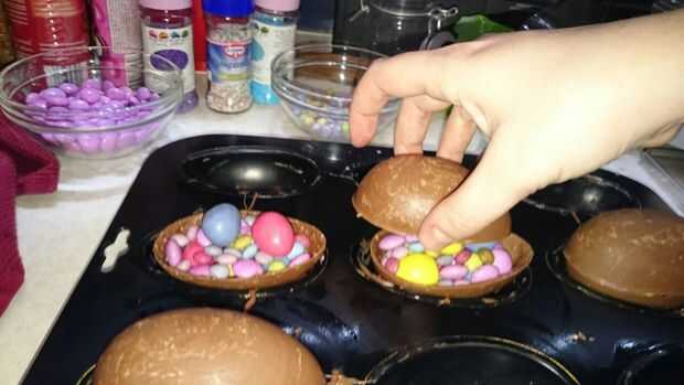 Ahora llene sus mitades de huevo con sus rellenos, como usted puede y quiere.