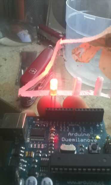 Último paso que ella es hacer los primeros dos mm de cada agujero un poco más grande para que el led puede sentarse en profundidad.