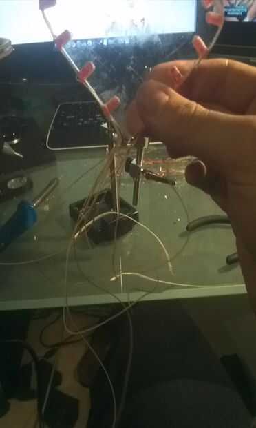Luego doblar todos sus ánodos (o cátodos) en una dirección a conectar más tarde.