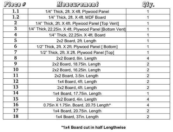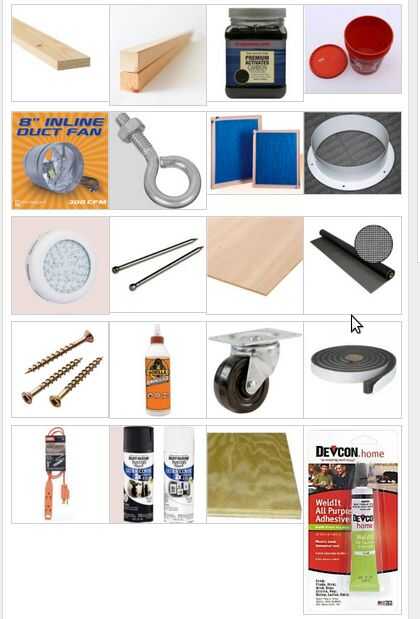 Ventilador en línea de 8, 8 tienda de la brida, 1.5″ ruedas de goma, lámpara de LED de 180 vatios, pernos de ojo, rollo LG. gorila cinta, 1.5″ uso tornillos, pintura de aerosol, malla de cribado, adhesivo de silicona, alambre clavos del clavito, pegamento para madera, 5 gal. Cubo con tapa, burletes, Heavy Duty (salida de x 3) cable de extensión, 22oz – 40oz de x4ft de 2 pies de carbón activado, filtro de aire (Panel), Panel de madera contrachapada, 2' x4′ tablero del MDF, 2 x 2 x 8 espárragos, 1 x 4 x 8 tableros, 2ft Panel de madera contrachapada de x4ft