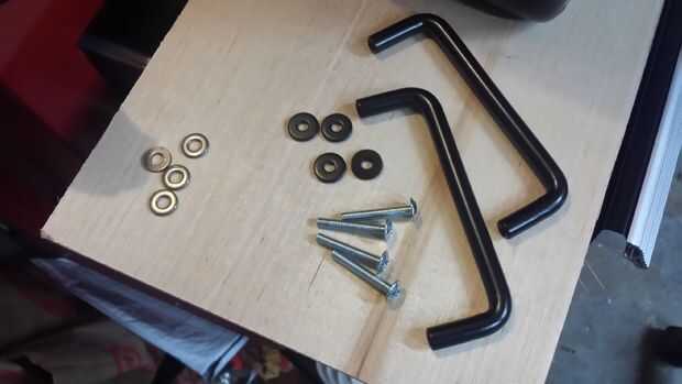 Estamos utilizando cajones o manijas del gabinete, así que elija los que trabajan y se ven bien con los altavoces. Usted puede encontrarlos en cualquier ferretería grande. En mi caso, utilicé las manijas del cajón negro de Ikea. Bastante barato para par de $5 creo, y perfectamente con mis altavoces.