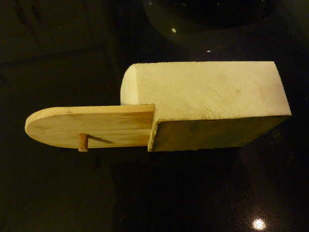 He construido un bloque de lijado rápido fuera de un pedazo de goma, superglued una pieza de 1/4 "x 3" Junta en la que perforó un agujero y pegado una clavija de 1/4" en una. No escribo un "cómo"hacerlo, pero voy a publicar las fotos. Voy también añadiendo la mayoría de la información sobre el proceso a ellos directamente porque es más fácil para mí. Si le gusta y necesita más detalles, pregunta y te añado.
