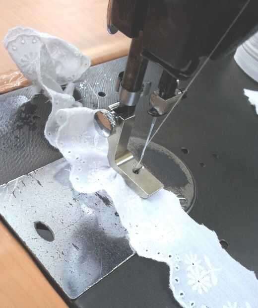 Añadir el pie de reunión (o volante del pie... no estoy seguro de lo que ha llamado... me justa llamada recogiendo pie) a su máquina y se reúnen hasta el cordón.