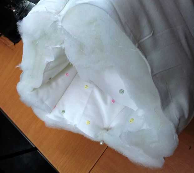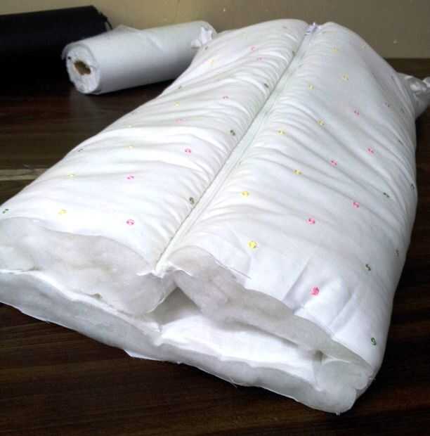 Virar todas las cuatro capas juntos... Asegúrese de obtener la guata.