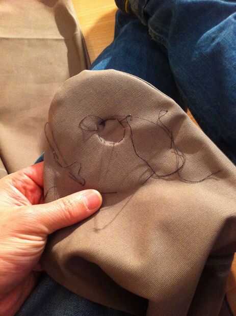 Así ponerlos dentro y entonces probar a coserlas tan firmemente como sea posible, puedes intentar hacerlo con la máquina de coser pero su duro y puedo decirles que rompí muchas agujas golpeando la madera.