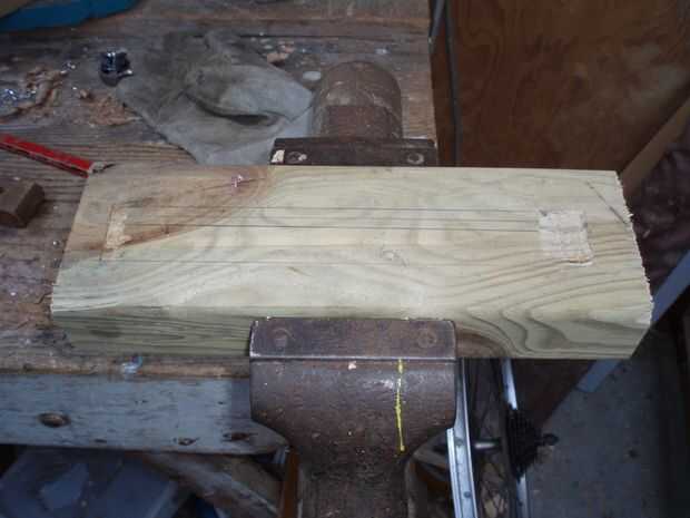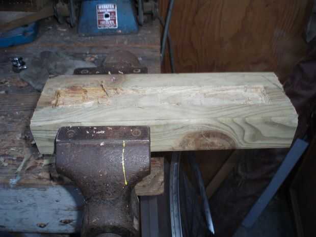 Con el fin de tener tanto peso en como pulseras poco posible, necesitaba que ser de plomo sólido. No bolsas llenan de recortes. Así que cincelado un lingote largo 22cm fuera de un bloque de pino, en el cual vertería plomo fundido (no es gunna capturas fuego en un mero 300 grados).